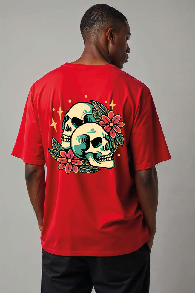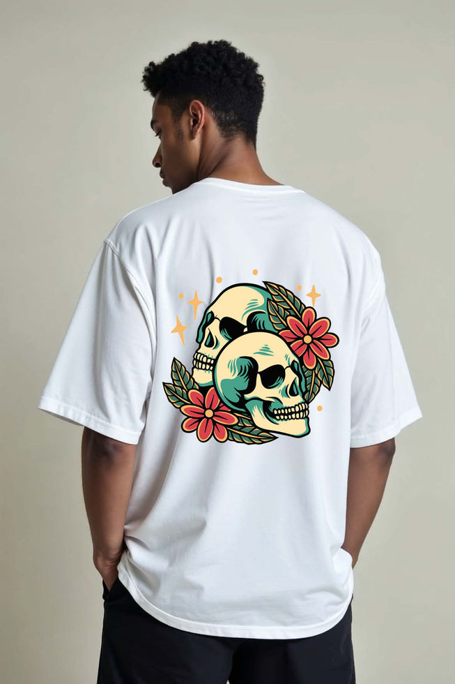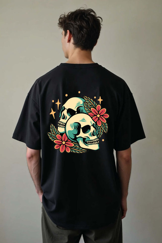 Floral Day of the Dead Skulls Casual Graphic Unisex Drop Shoulder Oversized Tees