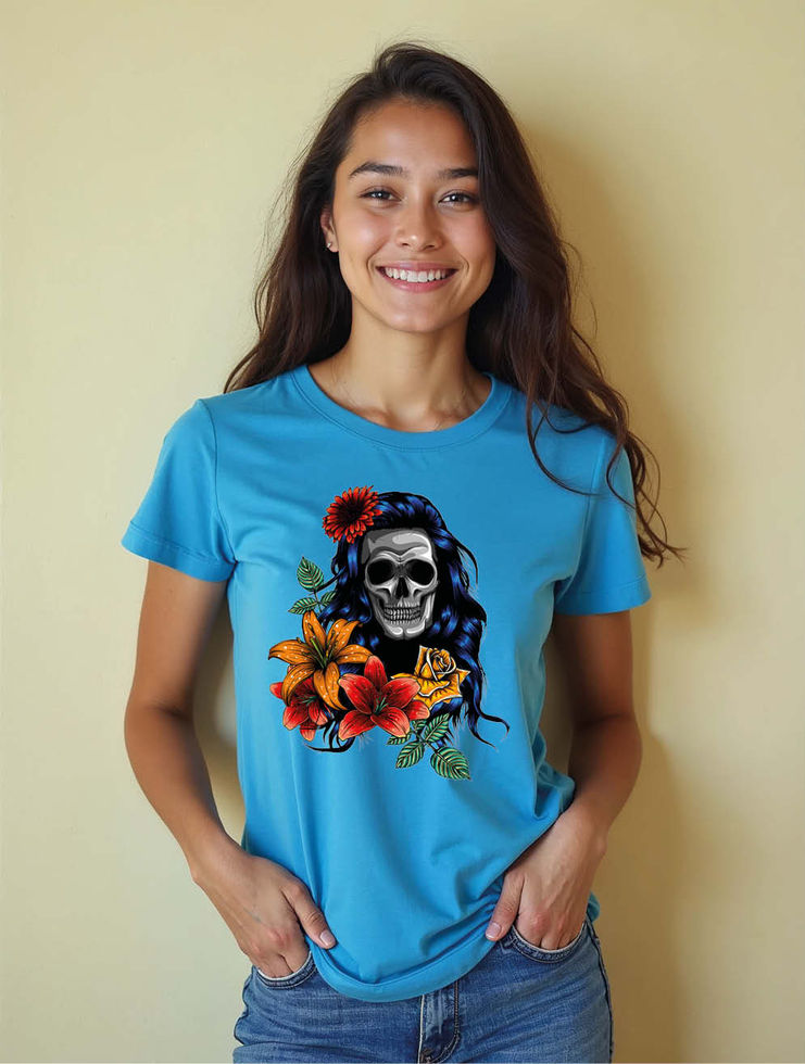 Floral Skull Siren Casual Women’s Printed Graphic Streetwear T-Shirt – Hot Deal
