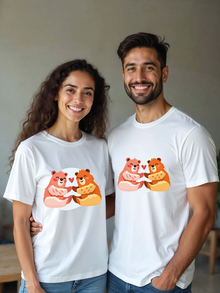 Try the premium quality pre-shrunk Couple T shirts.