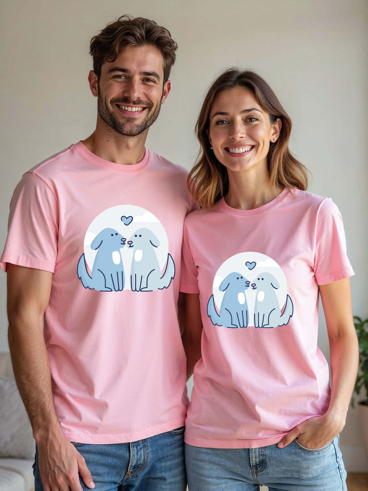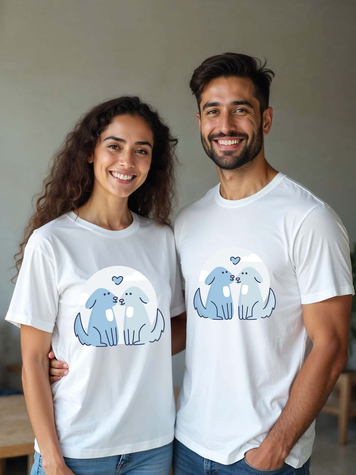 Try the premium quality pre-shrunk Couple T shirts.