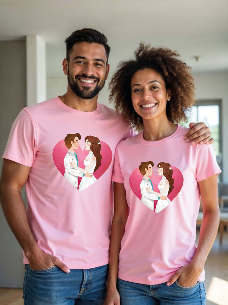 Try the premium quality pre-shrunk Couple T shirts.