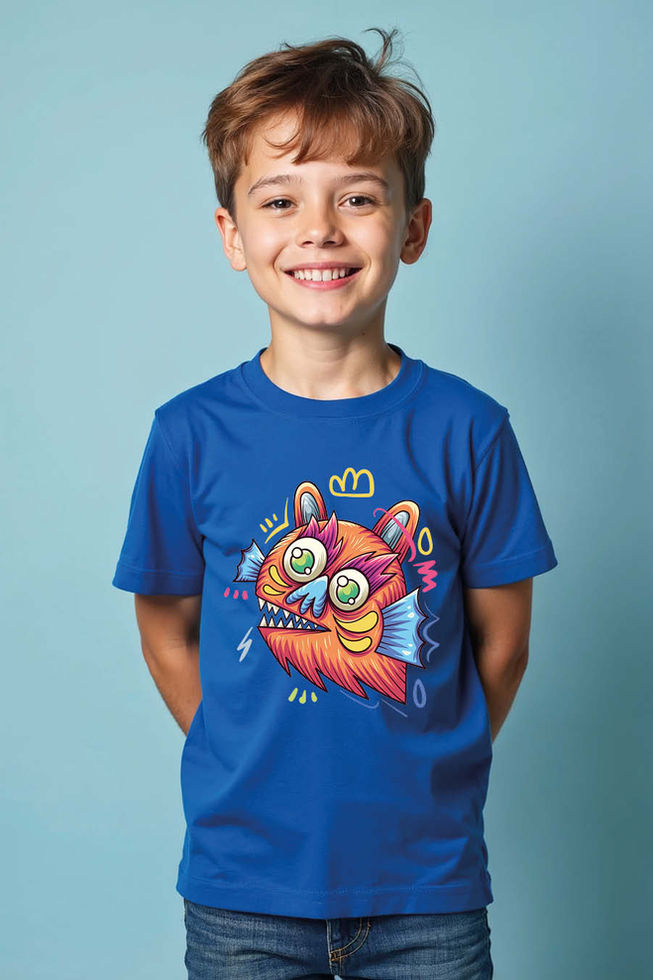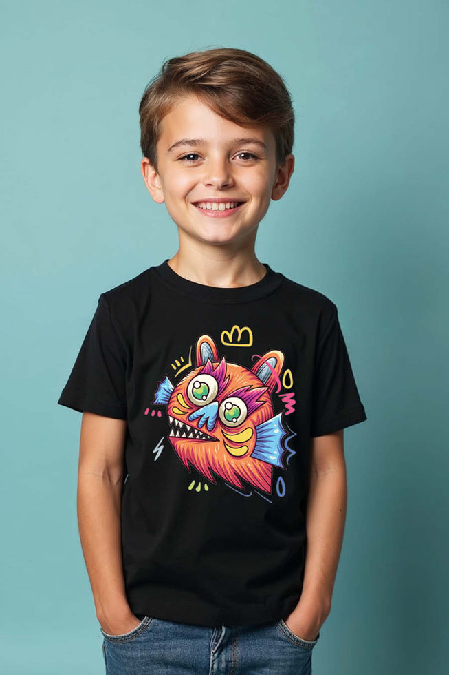Furry Cat-Fish Monster kids tees Fashion Cute Kids Typography T-Shirt – Graphic
