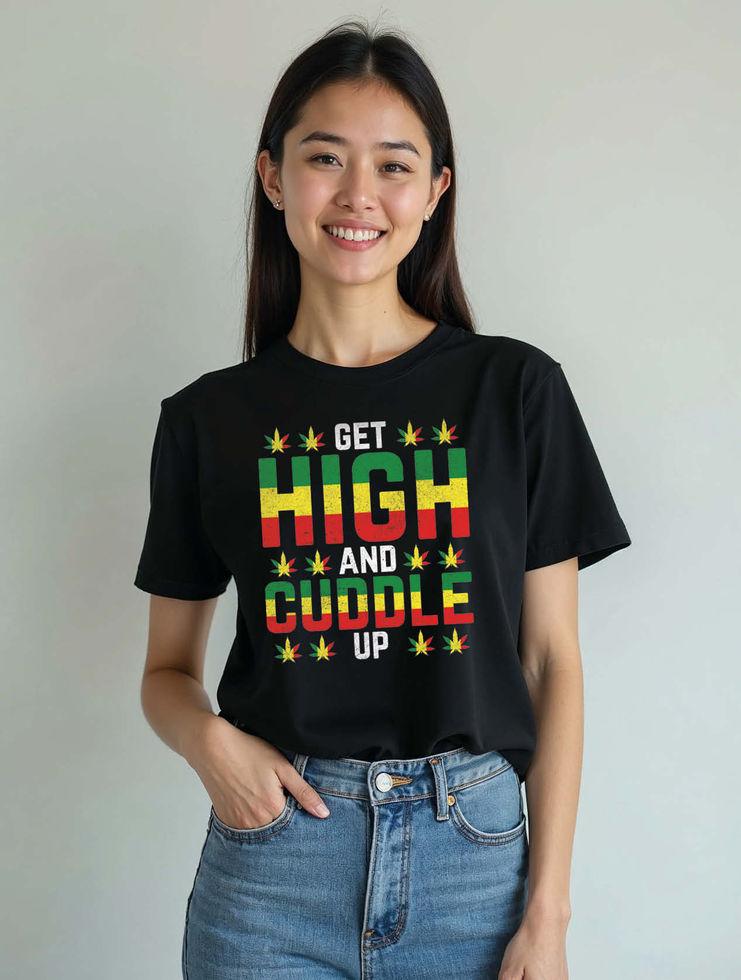 get high and cuddle up Stylish Women’s Printed Graphic Streetwear T-Shirt