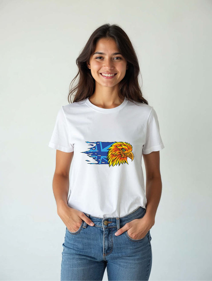 Golden Eagle Head with Distressed Union Jack Flag Urban Women’s Printed T-Shirt