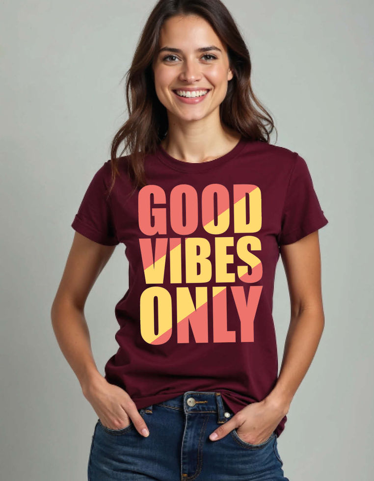 good vibes only Round Neck Graphic Tee for Adults & Kids – Premium