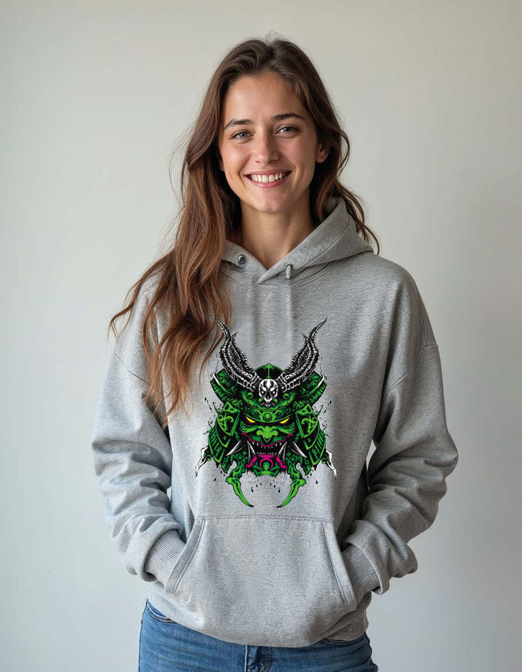 Green weed leaf Retro Samurai hannya mask Unisex Graphic Printed Hoodies