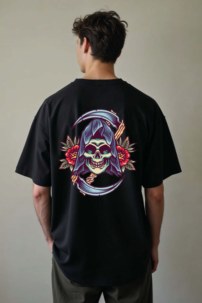 Grim Reaper Scythe and Rose Vintage Unisex Drop Shoulder Oversized T-Shirt