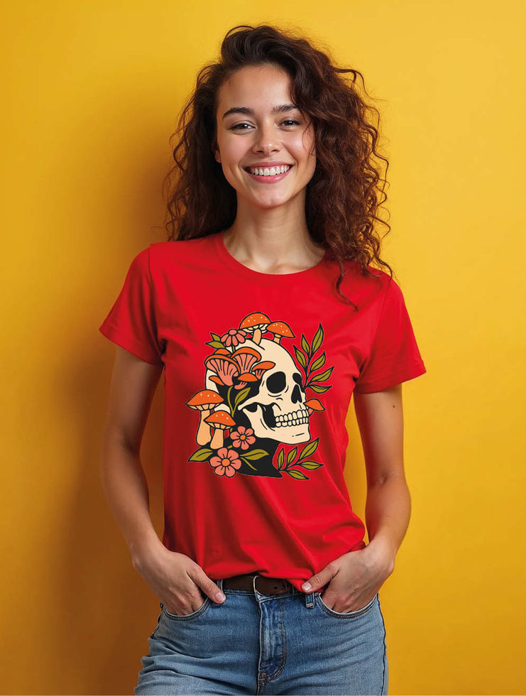 Groovy Mushroom Skull Graphic Urban Women’s Printed Graphic Streetwear T-Shirt