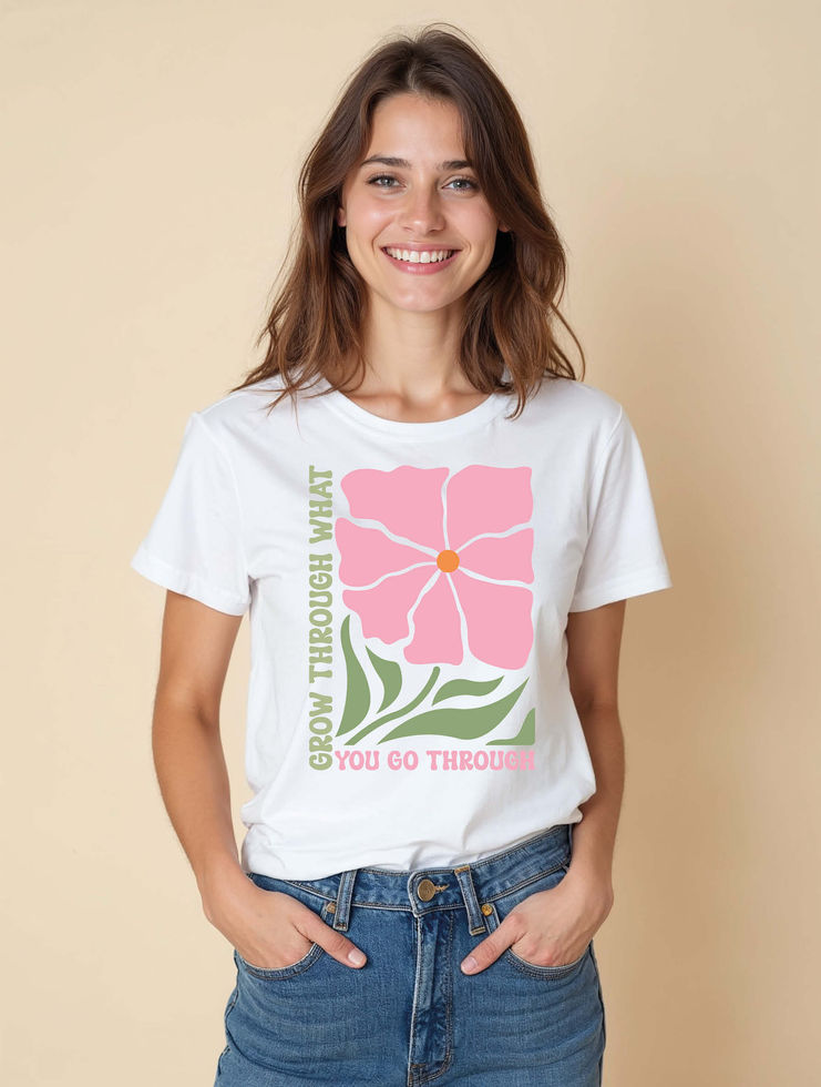 grow through what you go through Casual Unisex Printed Graphic T-Shirt