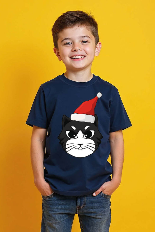 Grumpy Cat Santa Hat T-Shirt Modern Typography Print T-Shirt for Kids