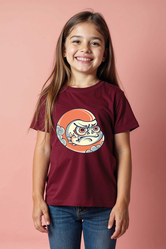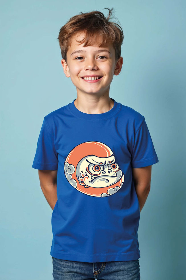 Grumpy Daruma Head Soft Stylish Kids Graphic T-Shirt – Sports Print Boys & Girls