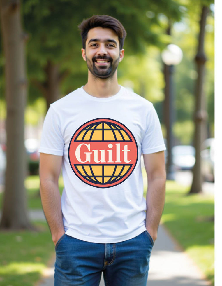 guilt Round Neck Graphic Tee for Men, Women & Kids – Trendy Print Design
