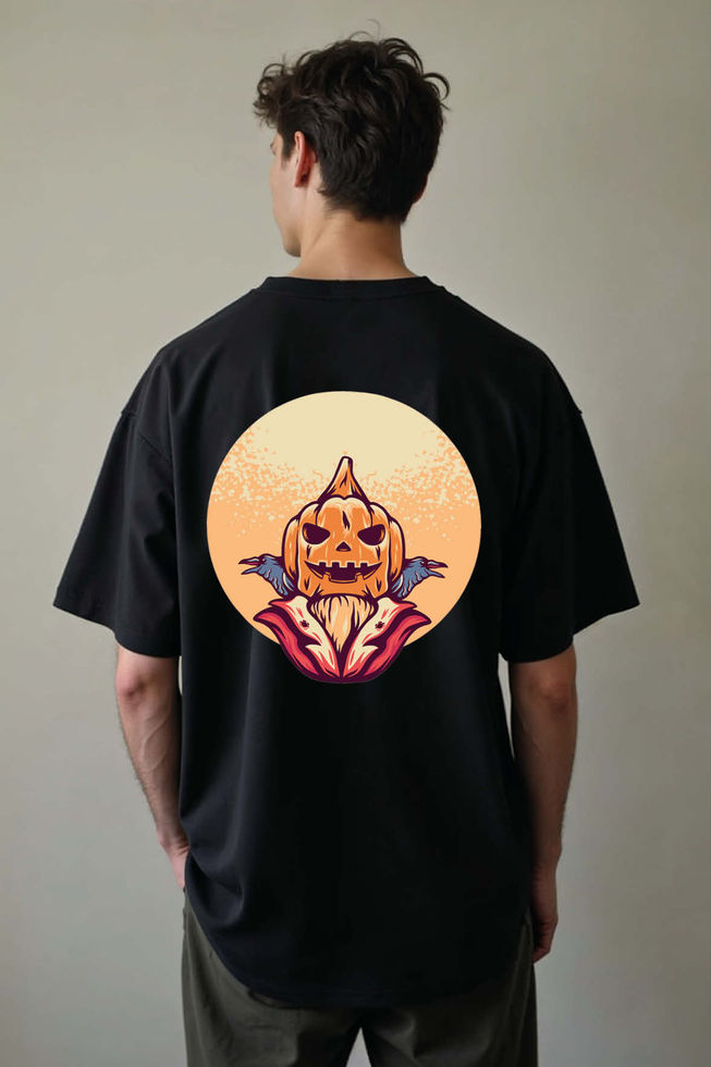 Halloween Pumpkin Skull Unisex Drop Shoulder Oversized T-Shirt