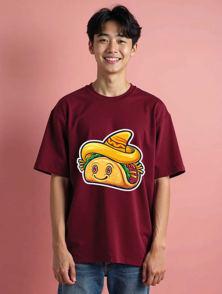 Happy Taco with Sombrero Aesthetic Graphic Unisex Drop Shoulder Oversized Tees