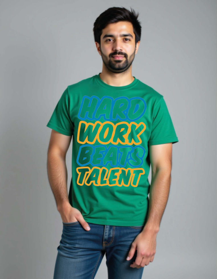 hard work beats talent Trendy Cotton T-Shirt for All Ages – Trendy Print