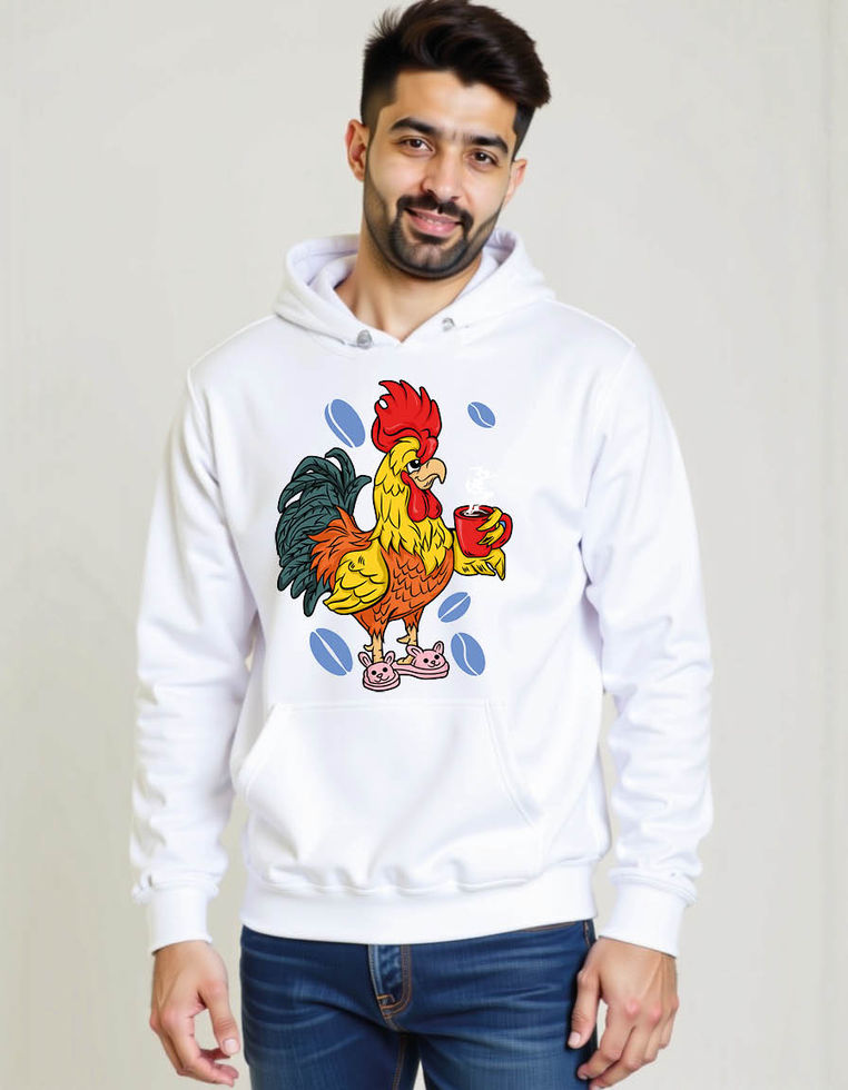 Modern Style: Graphic print design with hooded neck and pullover type.