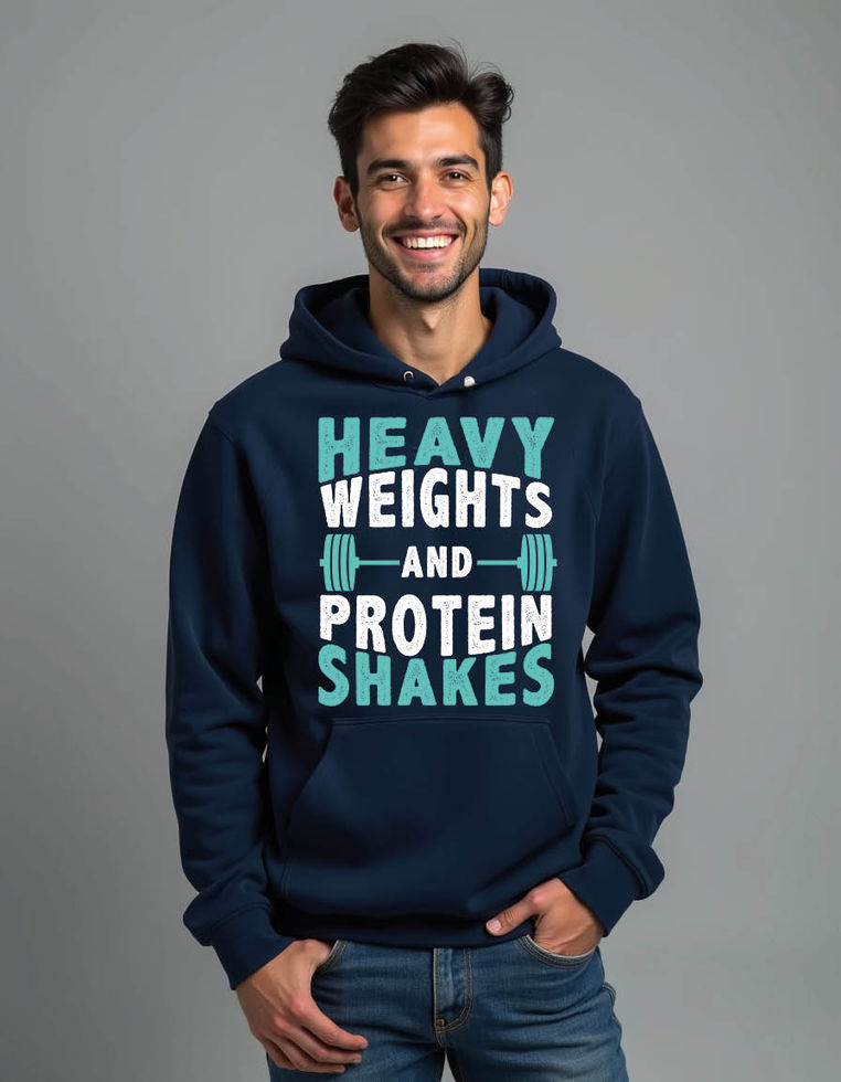 heavy weigts and protein shakesCasual Streetwear Men’s Printed Hoodie