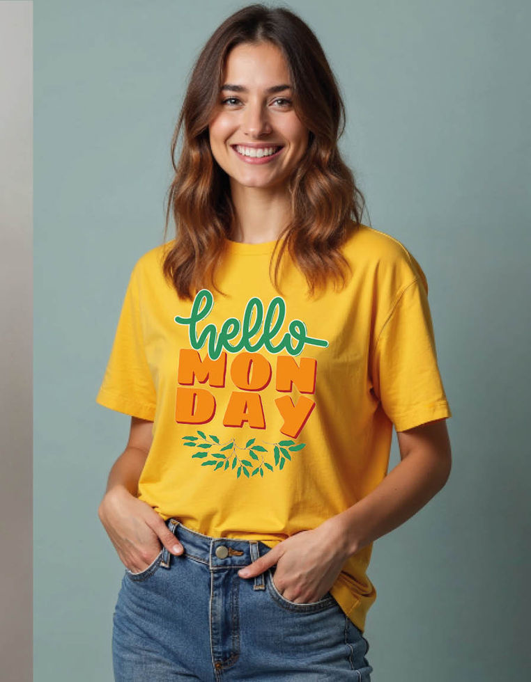 Hello Mon Day Trendy Cotton T-Shirt for All Ages