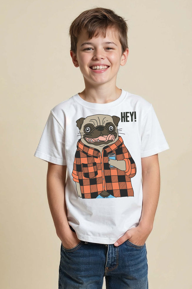 hey dog Casual Cute Kids Typography T-Shirt – Cartoon Design for Boys & Girls