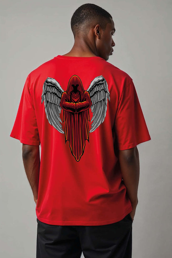 Hooded Angel of Death Urban Streetwear Unisex Drop Shoulder Oversized T-Shirt