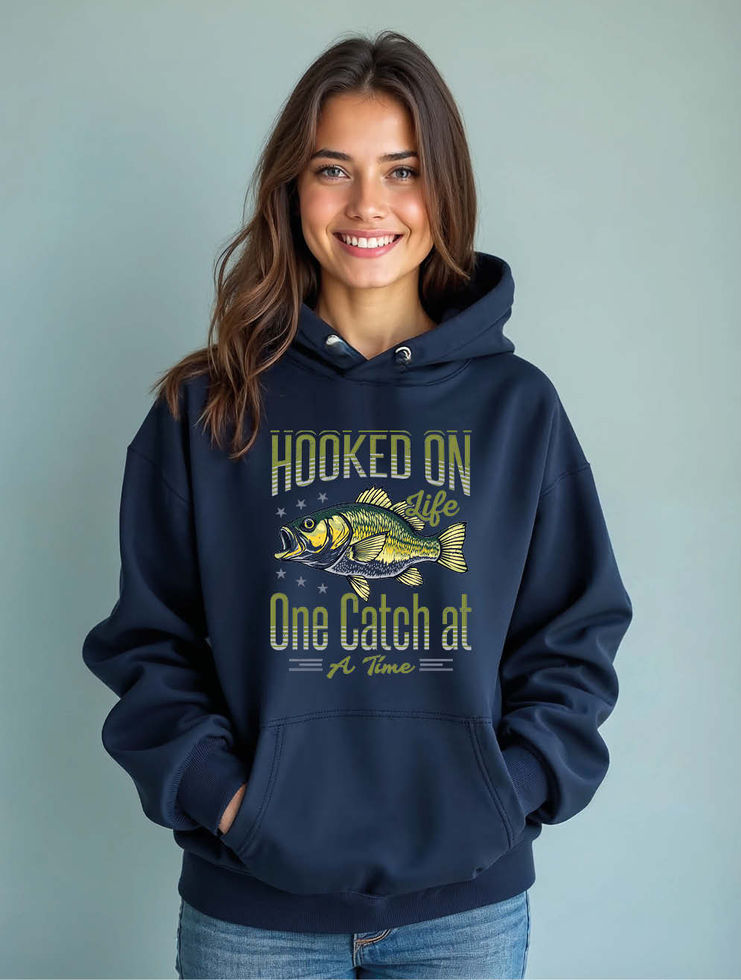 hooked on life one catch at a time Woman's Printed Graphic Stylish Hoodies