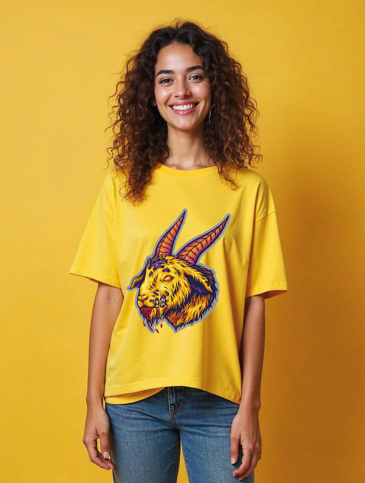 horned goat or demon head Cool Unisex Drop Shoulder Oversized T-Shirt