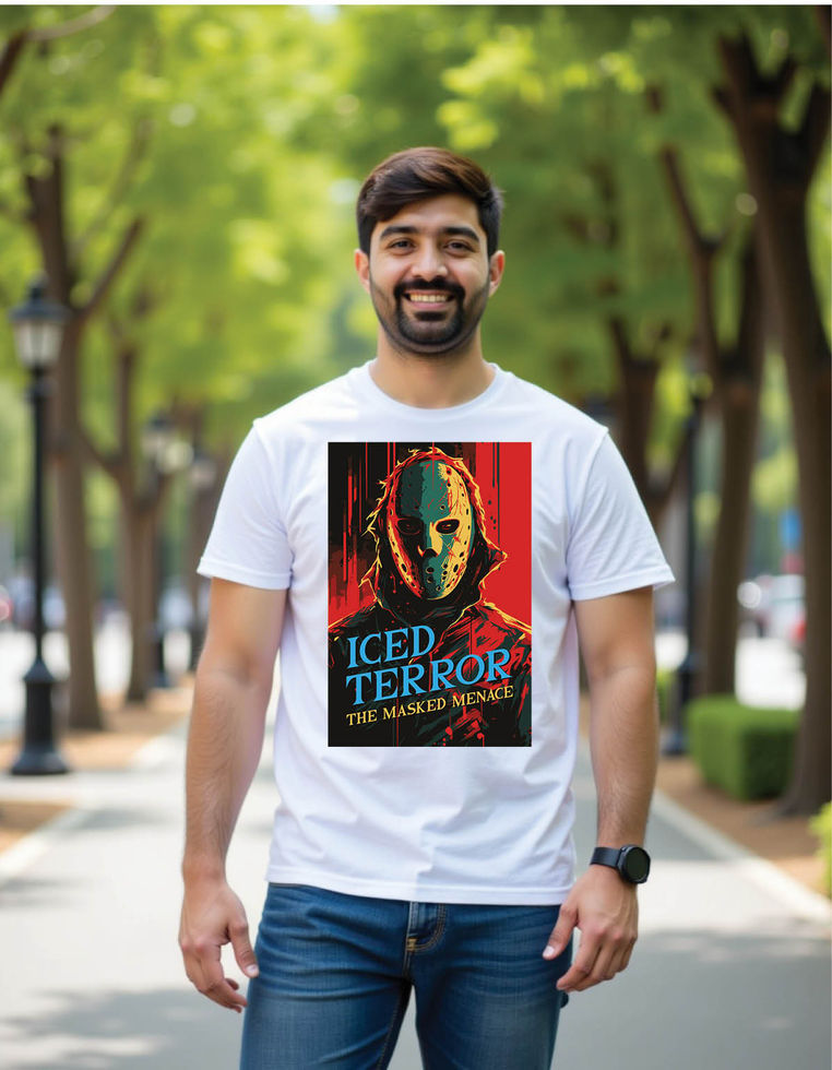 horror film called iced terror masked menace mens printed graphic t shirt