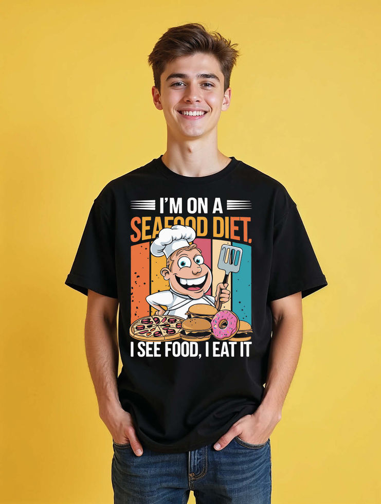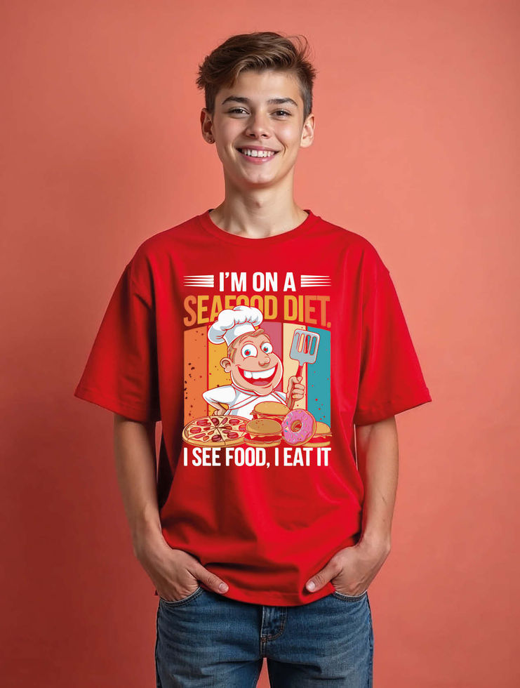 i'm on a seafood diet i see food i eat it Unisex Oversized Drop Shoulder T-Shirt