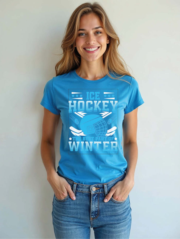 Ice hockey the best part of winter Urban Women’s Typography T-Shirt – Hot Deal