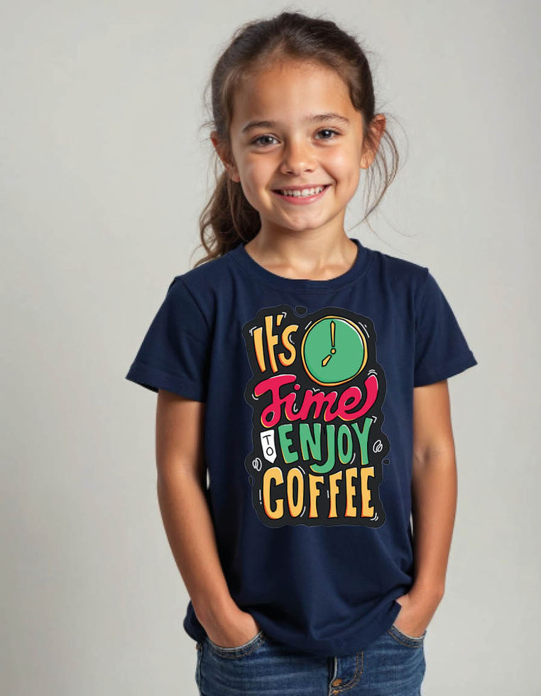 Its Time Enjoy Coffee Round Neck Graphic Tee for Adults & Kids