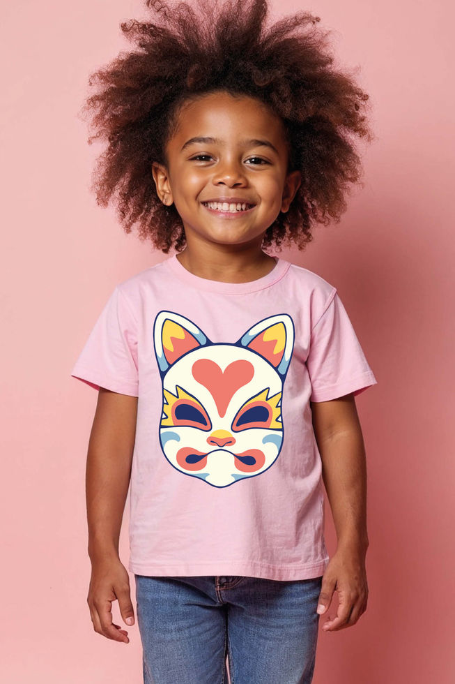 Japanese Fox Mask Kitsune Graphic T-Shirt Comfortable Kids Printed T-Shirt