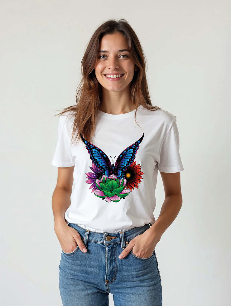 Jewel Butterfly Bloom Chic Women’s Printed Graphic Streetwear T-Shirt – Fast