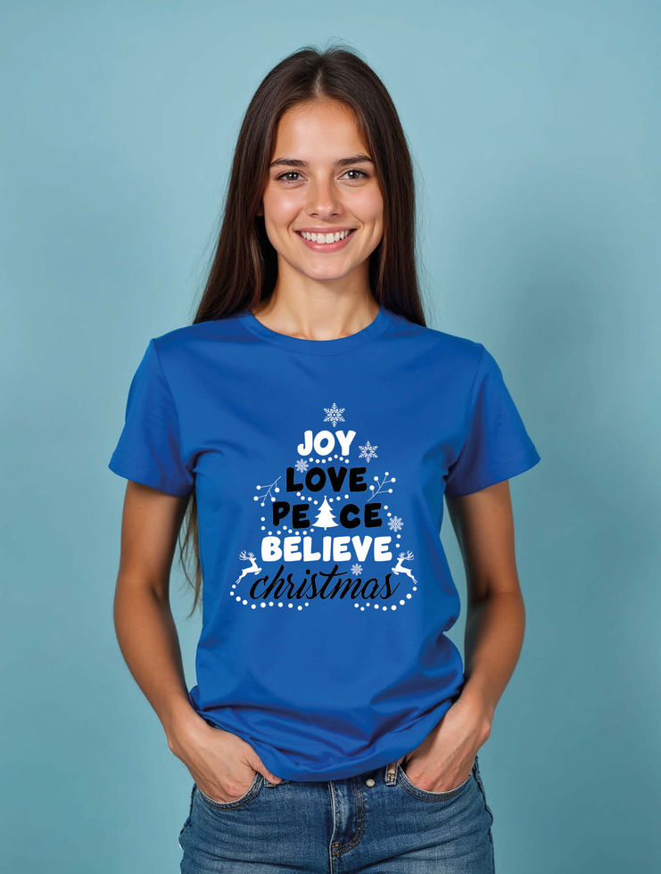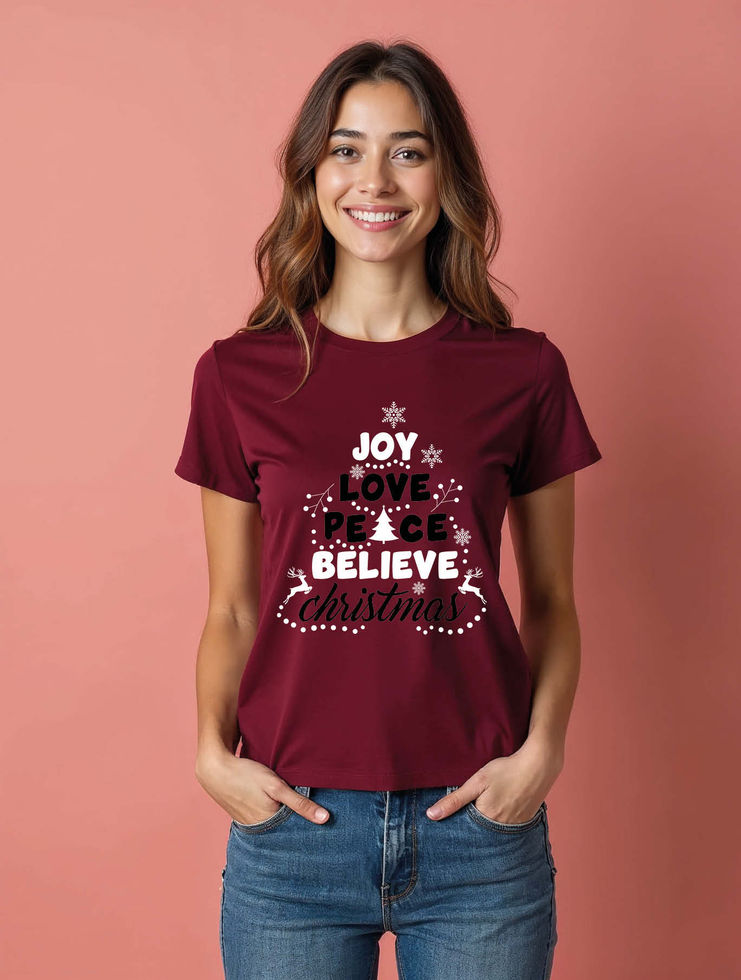 joy love peace believe christmas Modern Women’s Printed Graphic T-Shirt