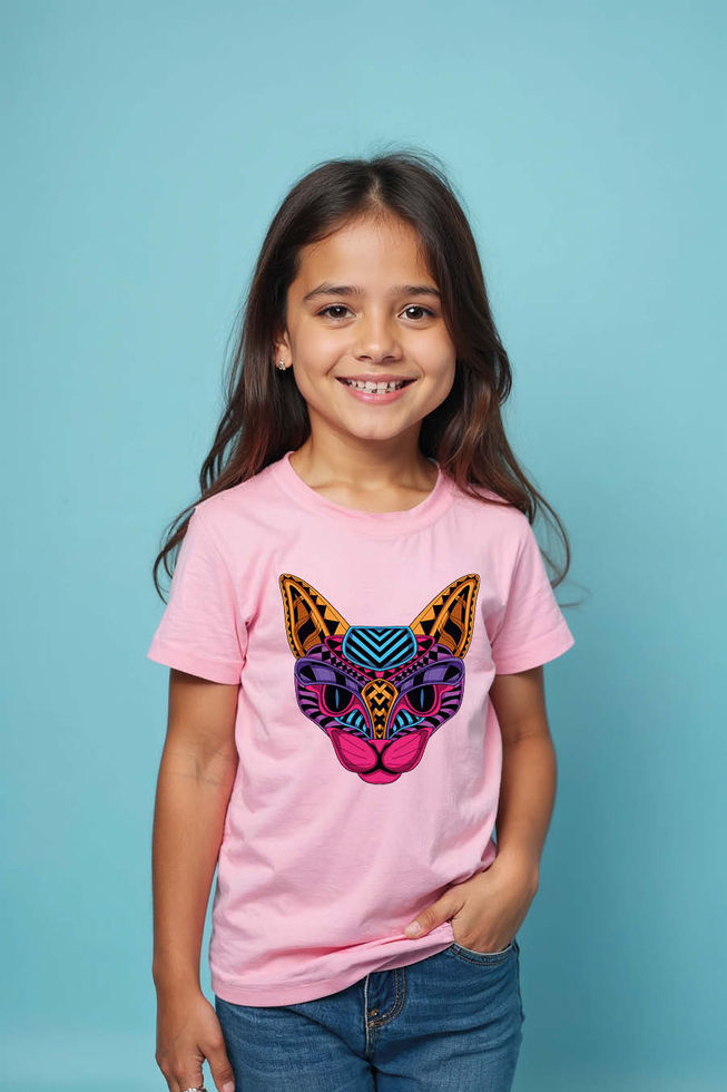 Kids' Cat / Feline Head T-Shirt - Vibrant Psychedelic Pop Art Kitten