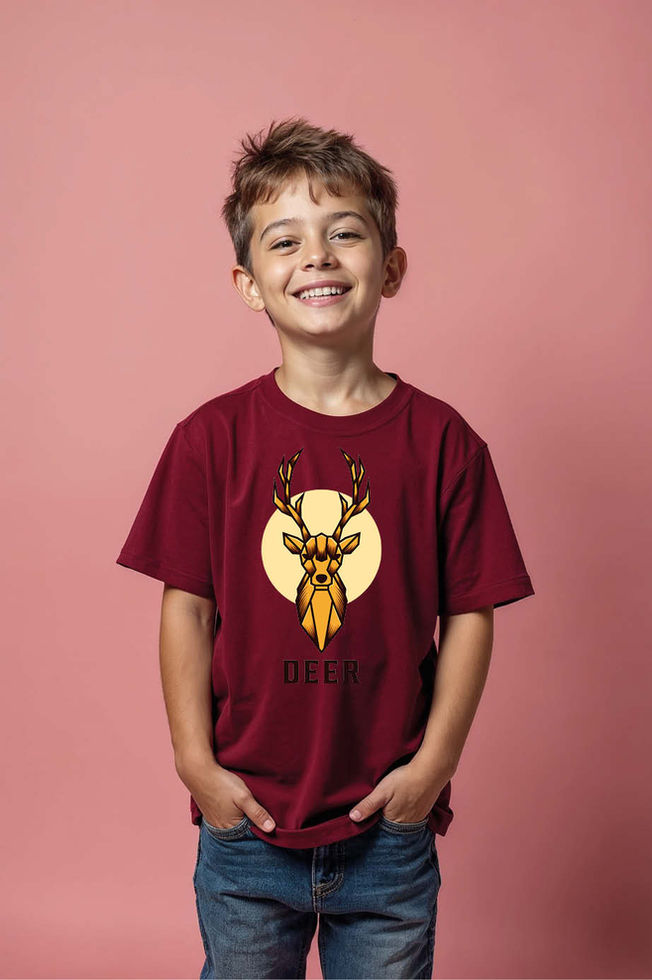 Kids' T-Shirt with Geometric Deer Head and "DEER" Fashion Cute Kids Typography