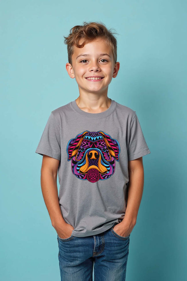 Kids' Vibrant Day of the Dead/Sugar Skull Style Dog Face T-Shirt - Intricate Man