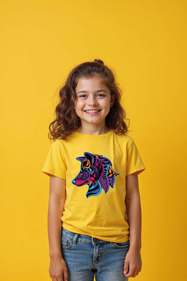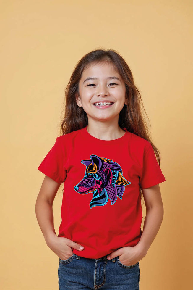 Kids' Wolf / Canine Head T-Shirt - Vibrant Psychedelic Pop Art Wild