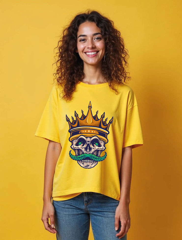 King Skull Crowned Hipster Moustache Unisex Oversized Drop Shoulder T-Shirt