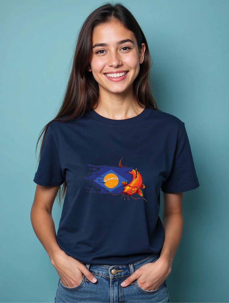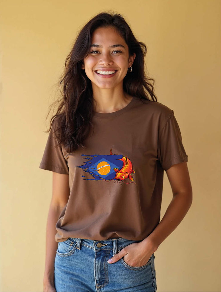 Koi Fish with Distressed Japanese Flag Cool Women’s Printed Graphic T-Shirt