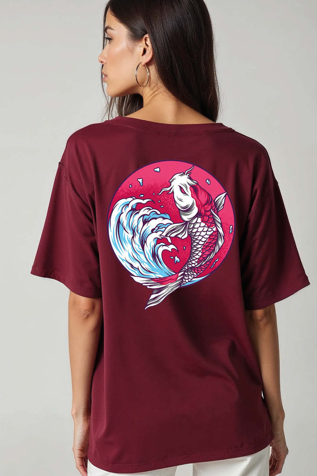 Koi Wave Ascent Athentic Unisex Drop shoulder Oversized T-Shirt