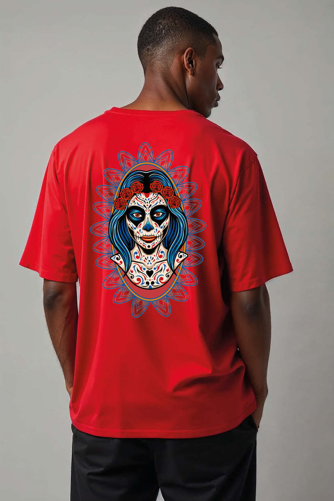 La Catrina Sugar Skull Trendy Unisex Drop Shoulder Oversized T-Shirt