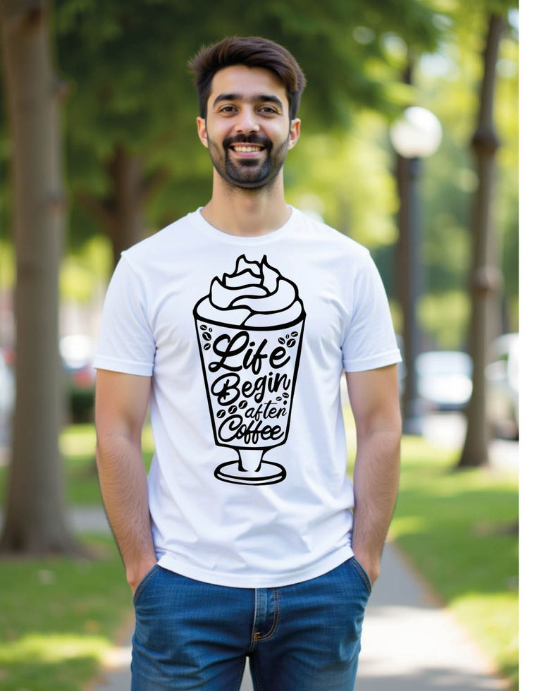life begin after coffee Classic Cotton T-Shirt for Men, Women & Children tees