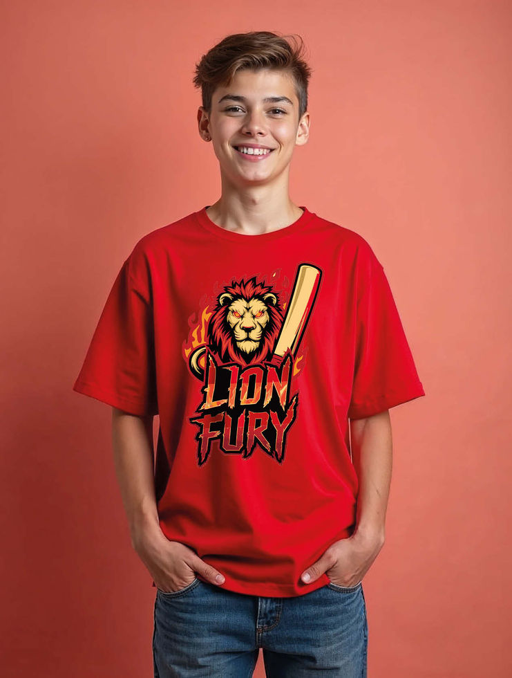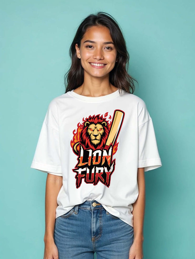 lion fury Casual Typography Unisex Oversized Drop Shoulder Tee for Men & Women