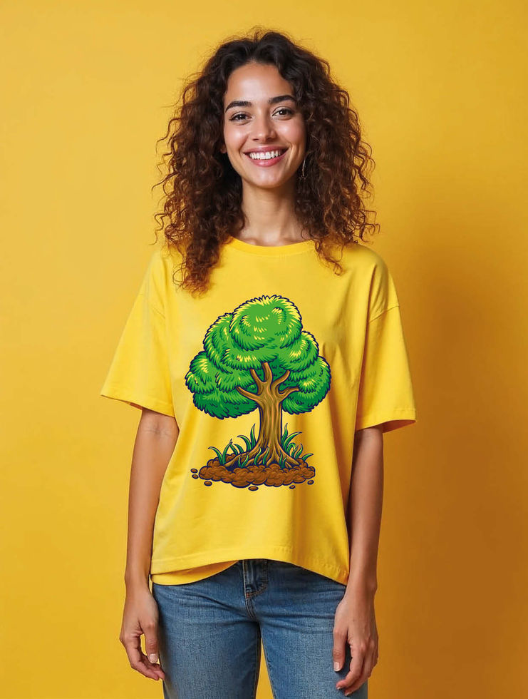 lush green tree Premium Unisex Drop Shoulder Oversized T-Shirt | Funny Graphic