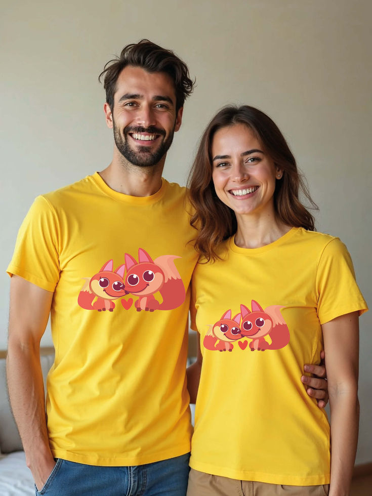 Try the premium quality pre-shrunk Couple T shirts.