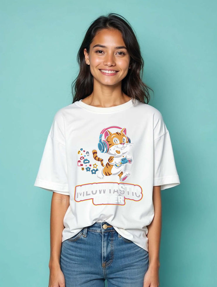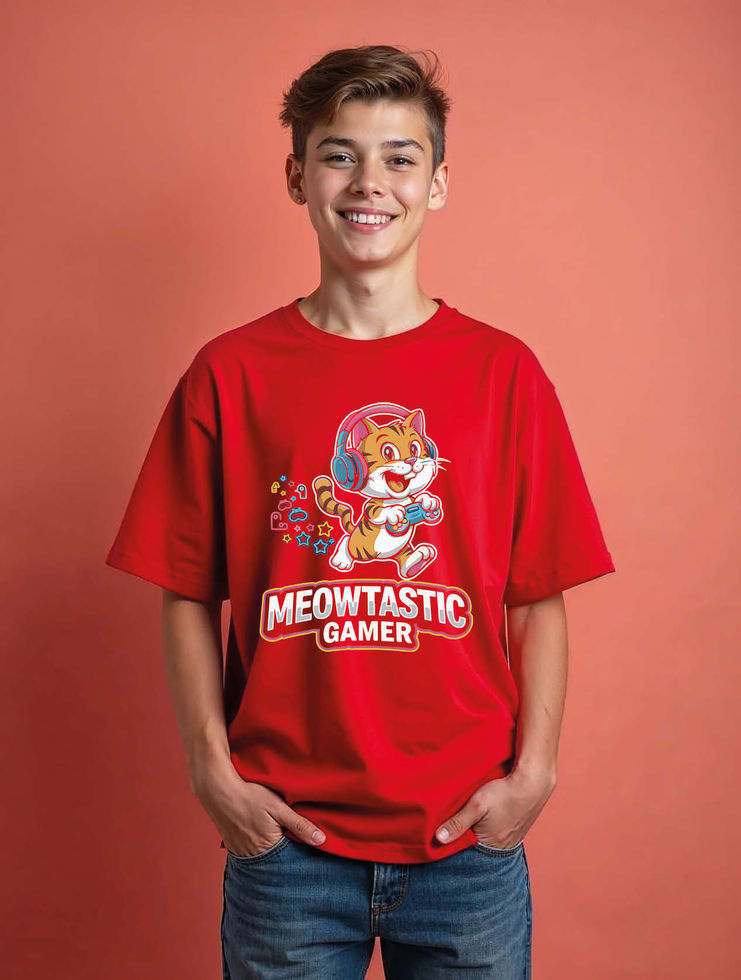meowtastic gamer Anime Unisex Drop Shoulder Oversized Tees for Men & Women