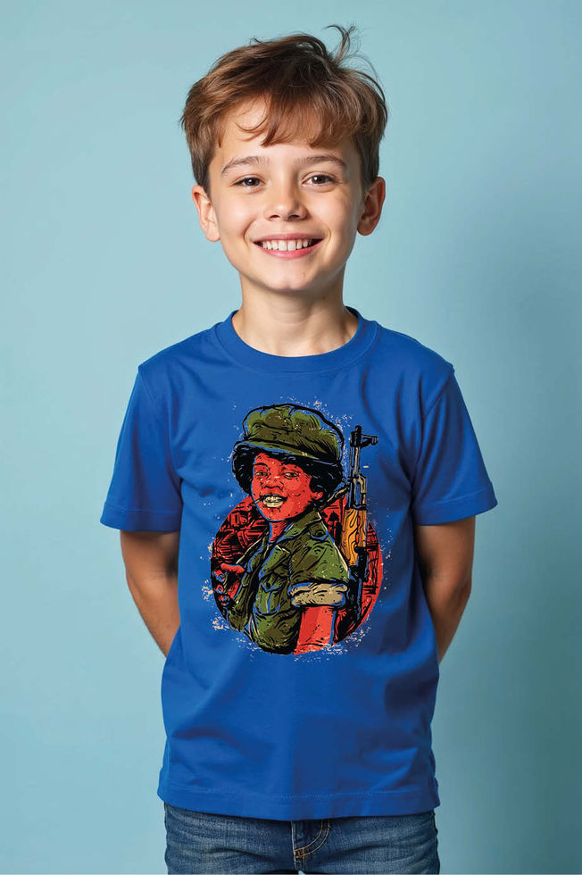 Military Youth Portrait Kids' Blue T-Shirt Modern Cute Kids Typography