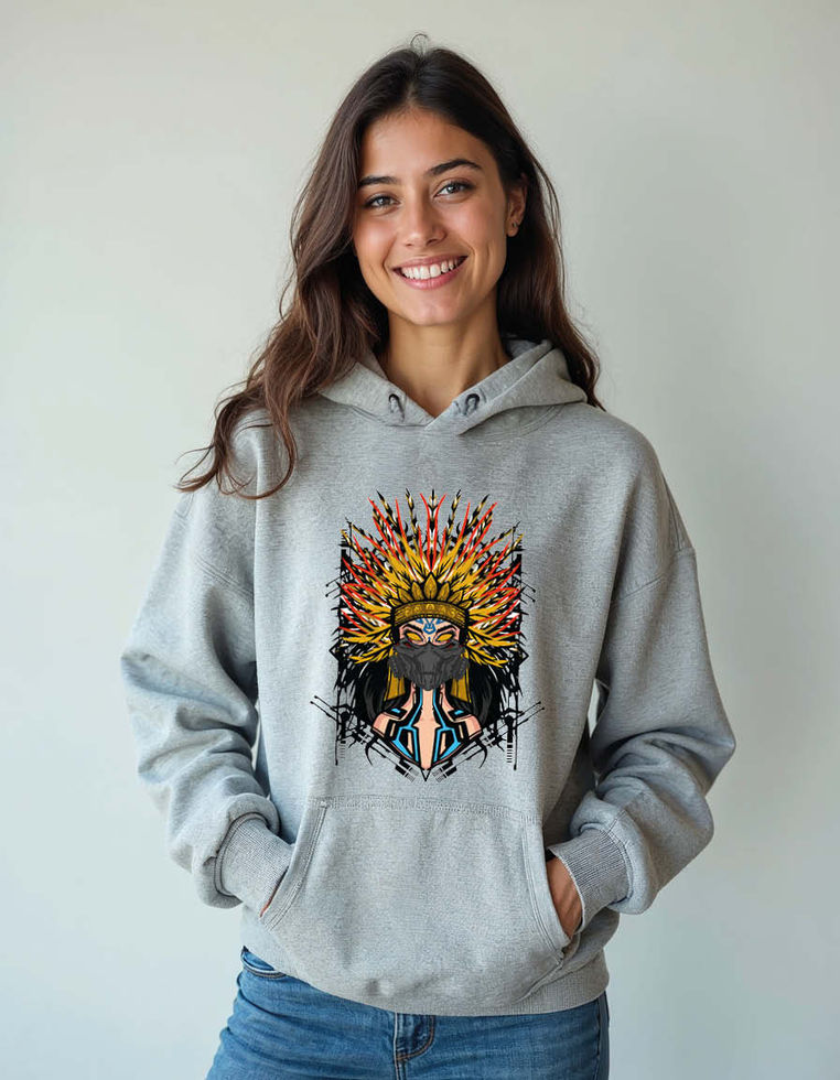 Mystic Tribal Lion Mask with Golden Feather Crown Unisex Printed Graphic Hoodies