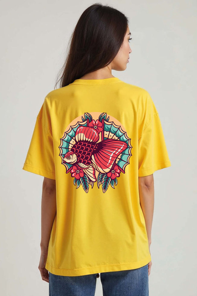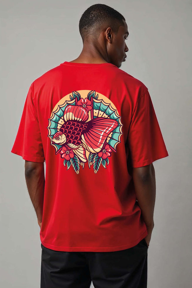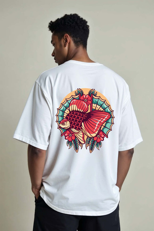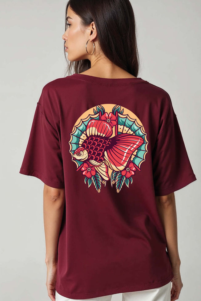 Neo-Traditional Betta Fish and Flower Unisex Drop Shoulder Oversized Tees