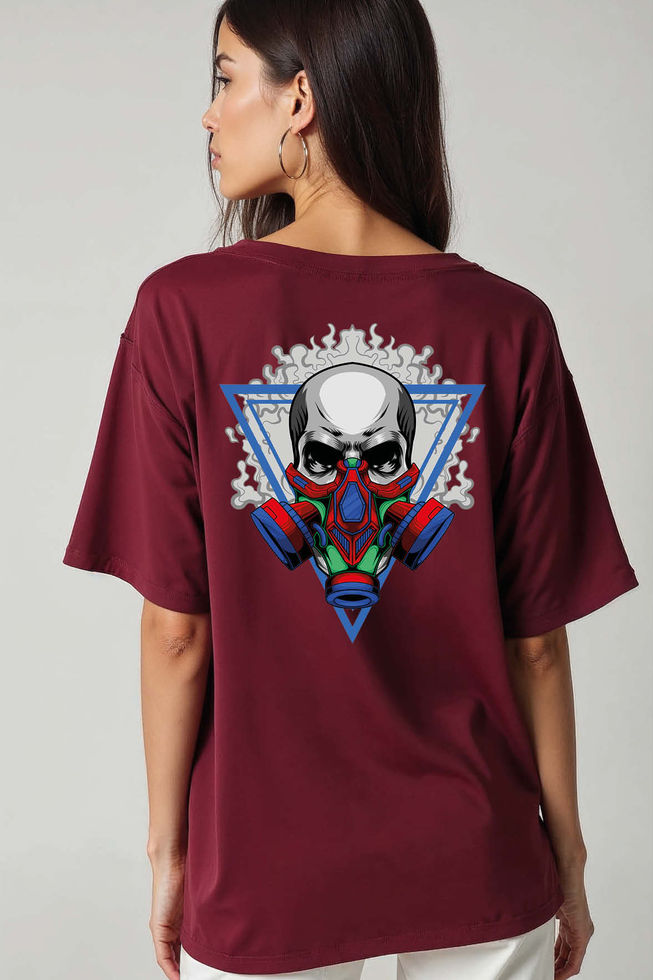 Neon Gas Mask Skull Trendy Unisex Drop Shoulder Oversized T-Shirt